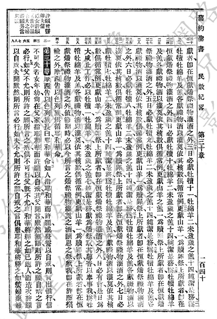 1927年新舊約全書(委辦譯本) 民數記 29 章 20 節到 30 章 9 節