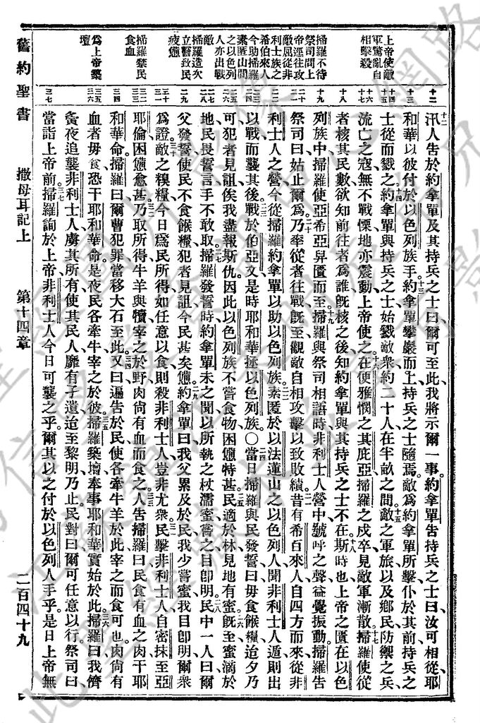 1927年新舊約全書(委辦譯本) 撒母耳記上 14 章 12 節到 14 章 37 節