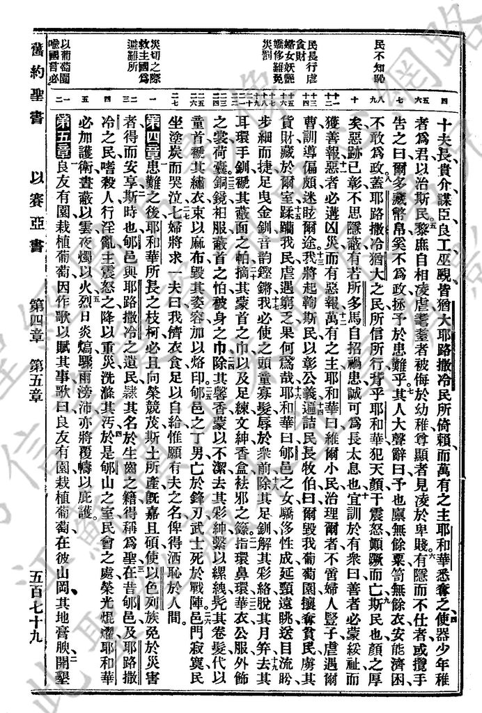 1927年新舊約全書(委辦譯本) 以賽亞書 3 章 4 節到 5 章 2 節