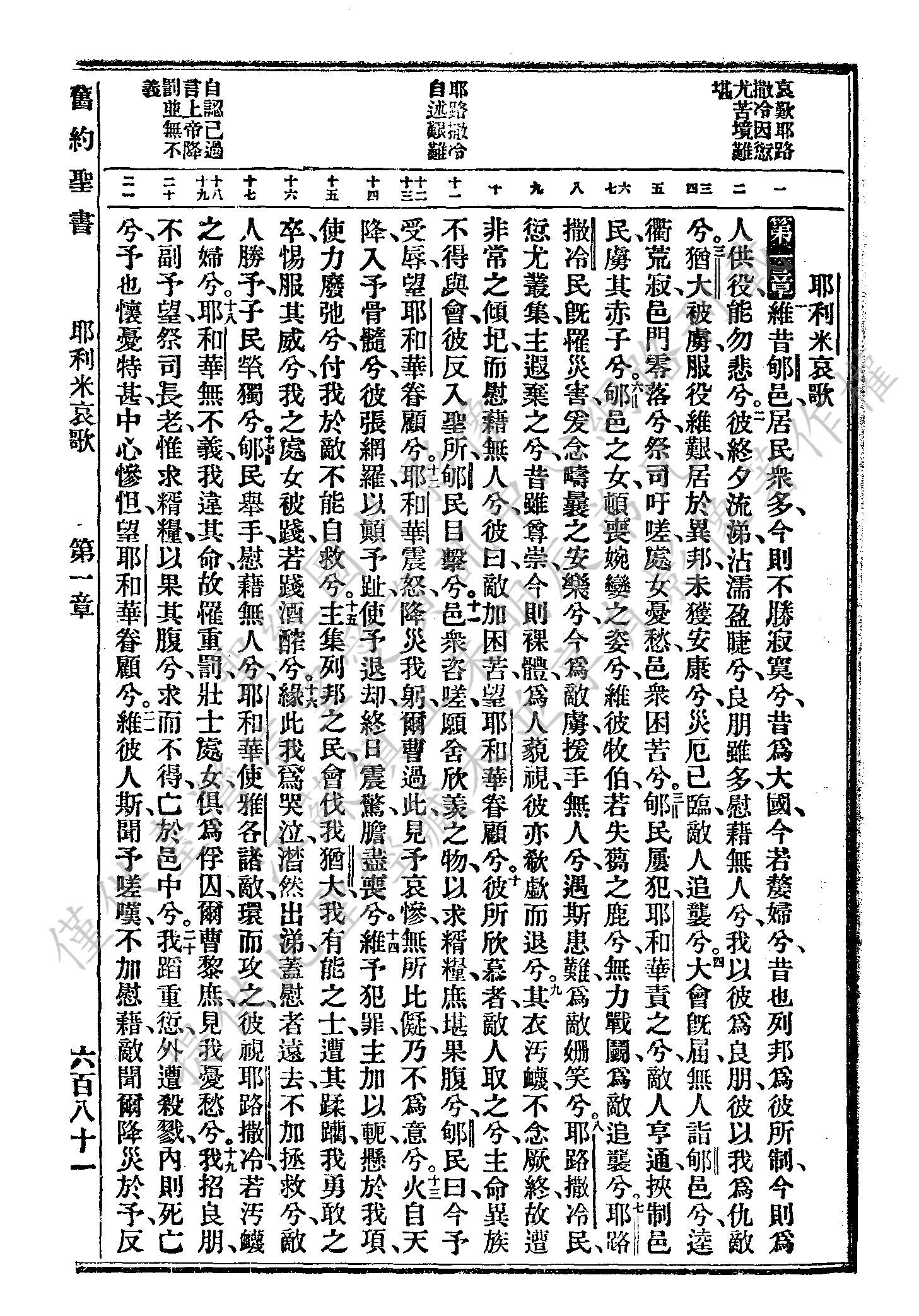 1927年新舊約全書(委辦譯本) 耶利米哀歌 1 章 1 節到 1 章 21 節