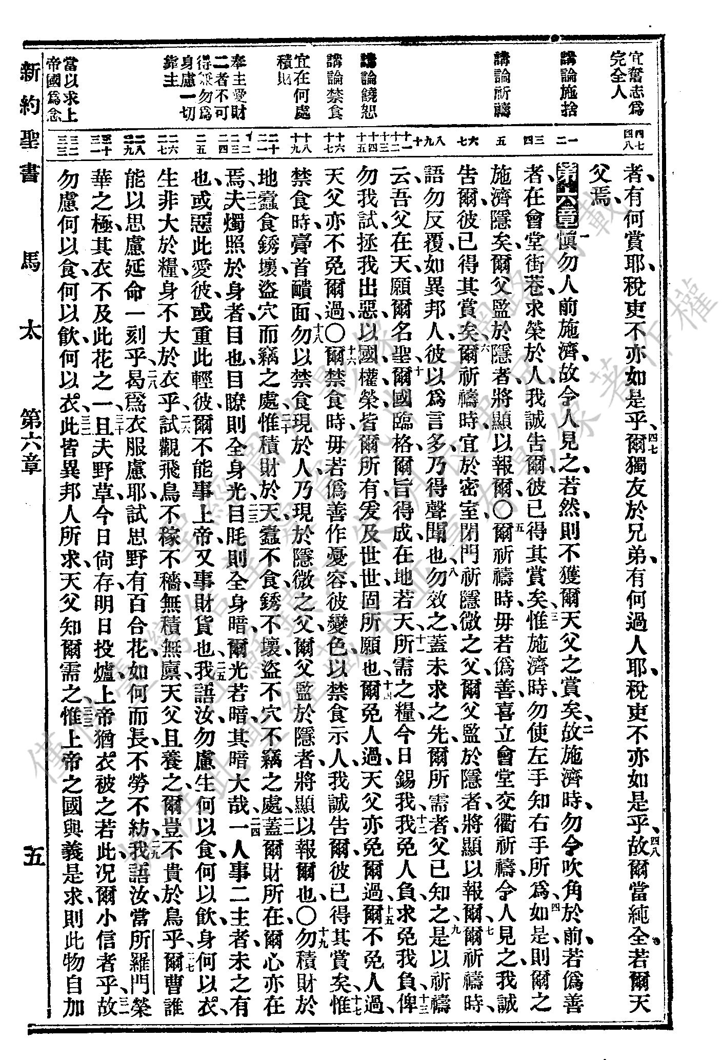 1927年新舊約全書(委辦譯本) 馬太福音 5 章 47 節到 6 章 33 節
