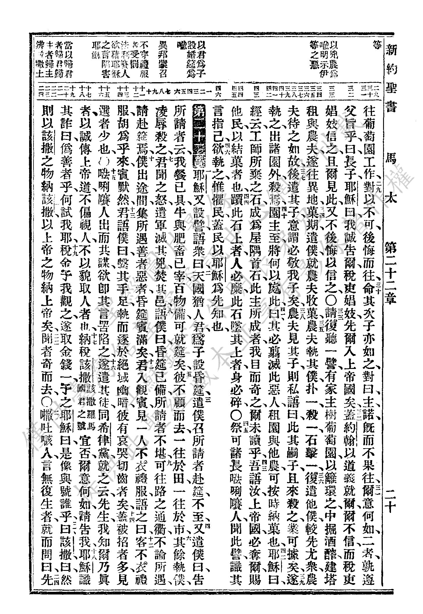 1927年新舊約全書(委辦譯本) 馬太福音 21 章 29 節到 22 章 24 節