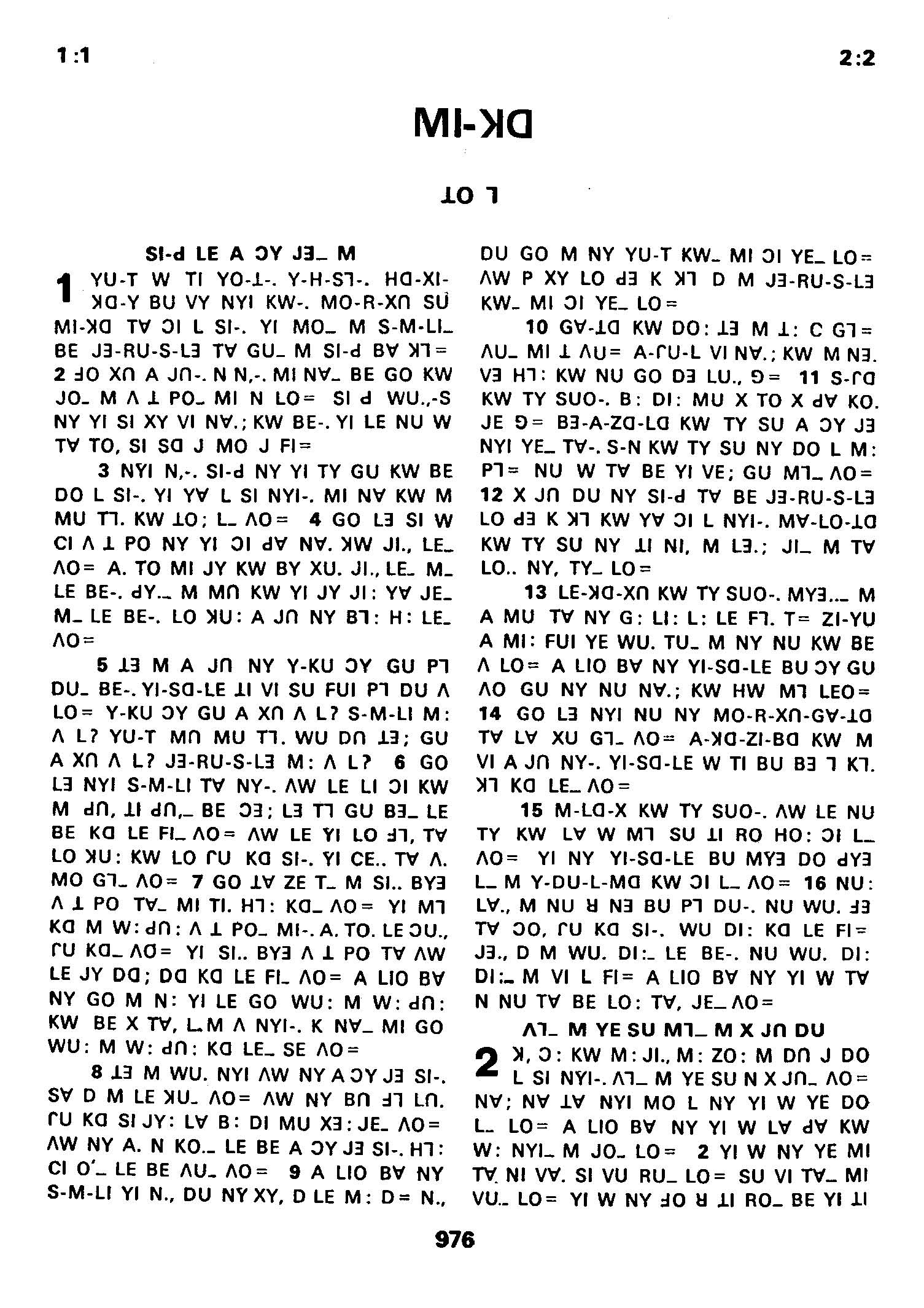 1980年傈僳語聖經全書 彌迦書 1 章 1 節到 2 章 2 節