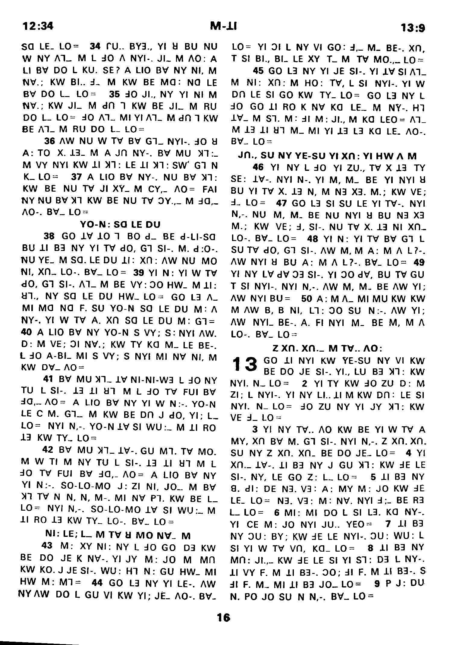 1980年傈僳語聖經全書 馬太福音 12 章 34 節到 13 章 9 節