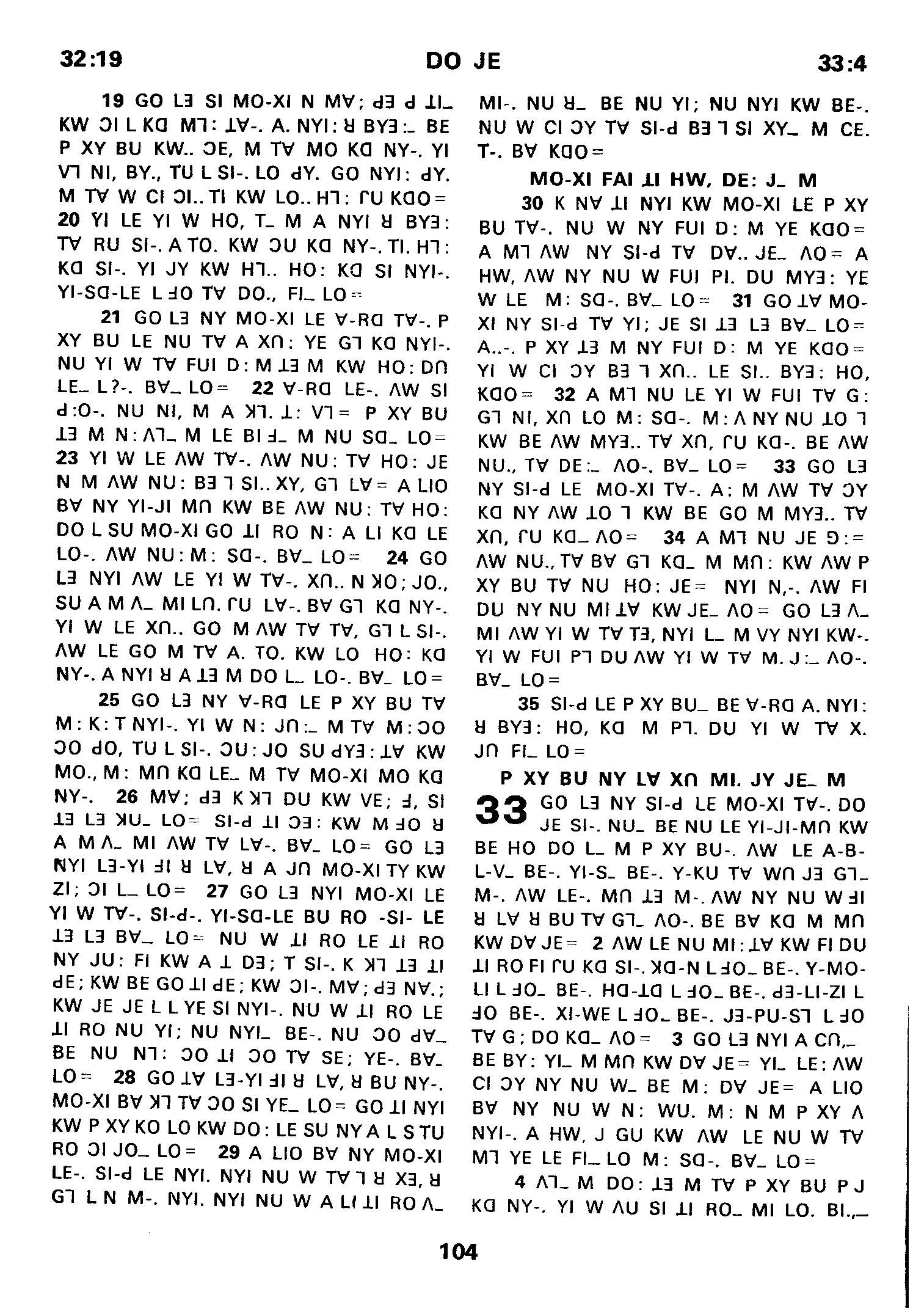1980年傈僳語聖經全書 出埃及記 32 章 19 節到 33 章 4 節