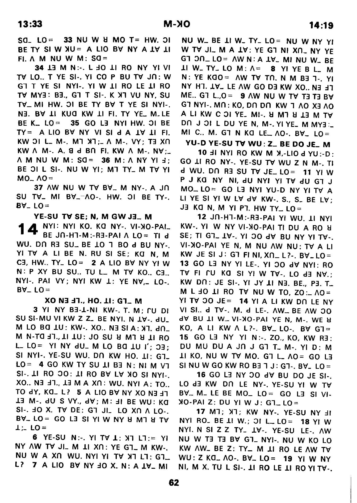 1980年傈僳語聖經全書 馬可福音 13 章 33 節到 14 章 19 節