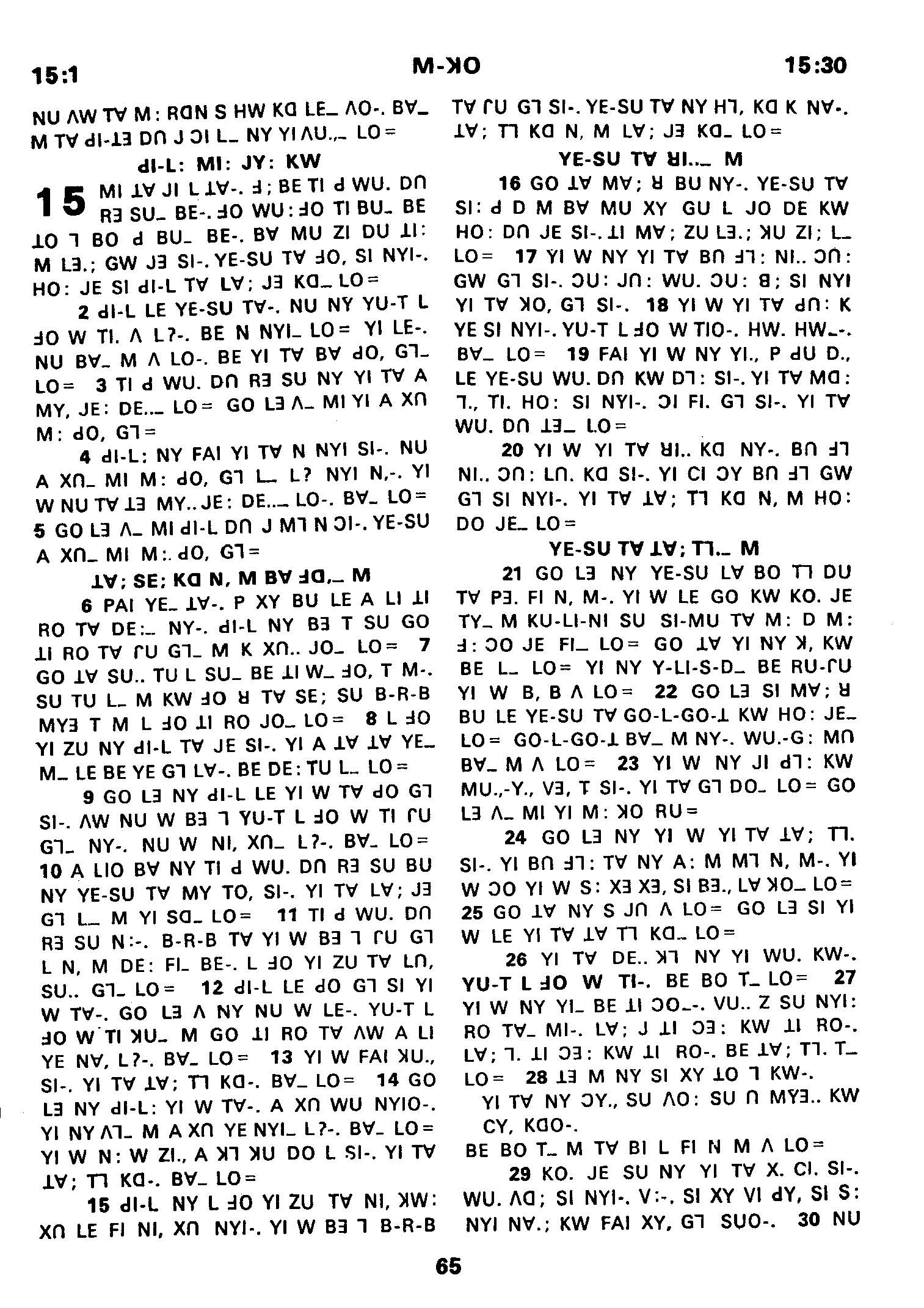 1980年傈僳語聖經全書 馬可福音 15 章 1 節到 15 章 30 節