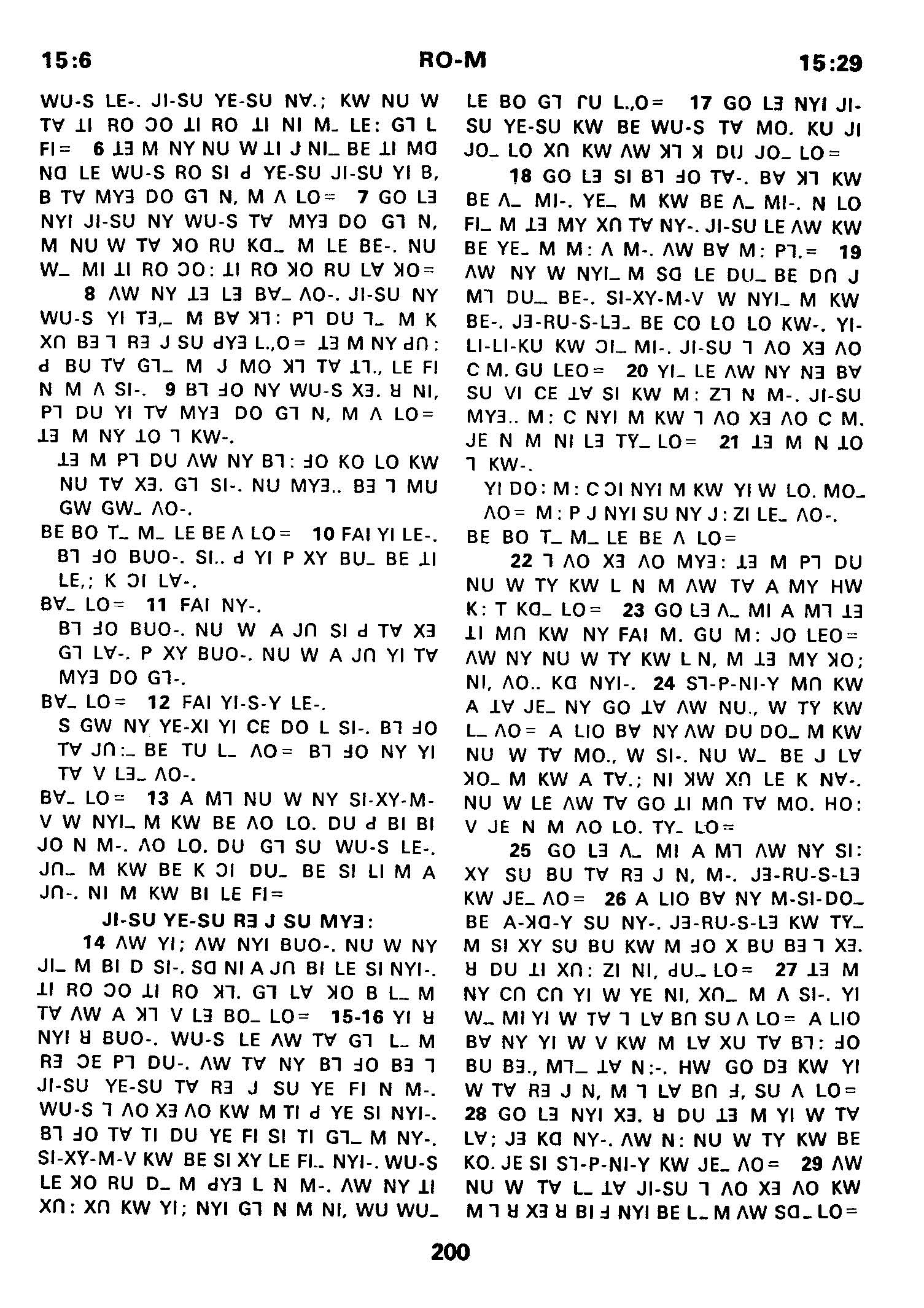 1980年傈僳語聖經全書 羅馬書 15 章 6 節到 15 章 29 節