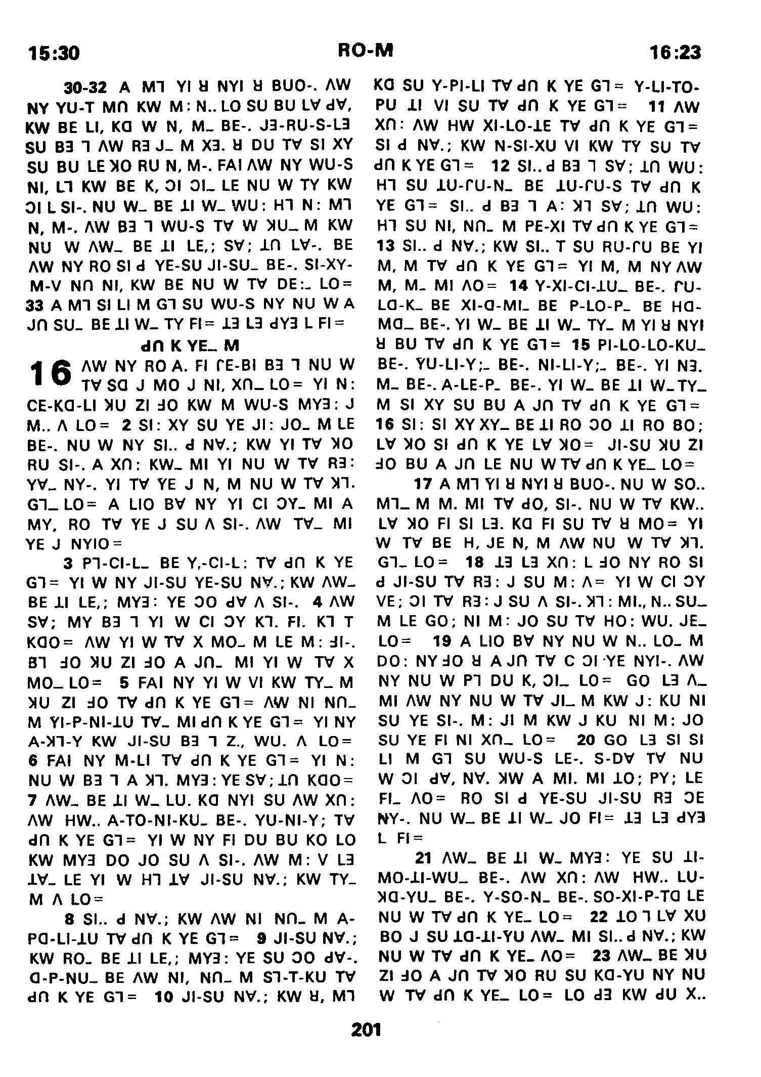 1980年傈僳語聖經全書 羅馬書 15 章 30 節到 16 章 23 節