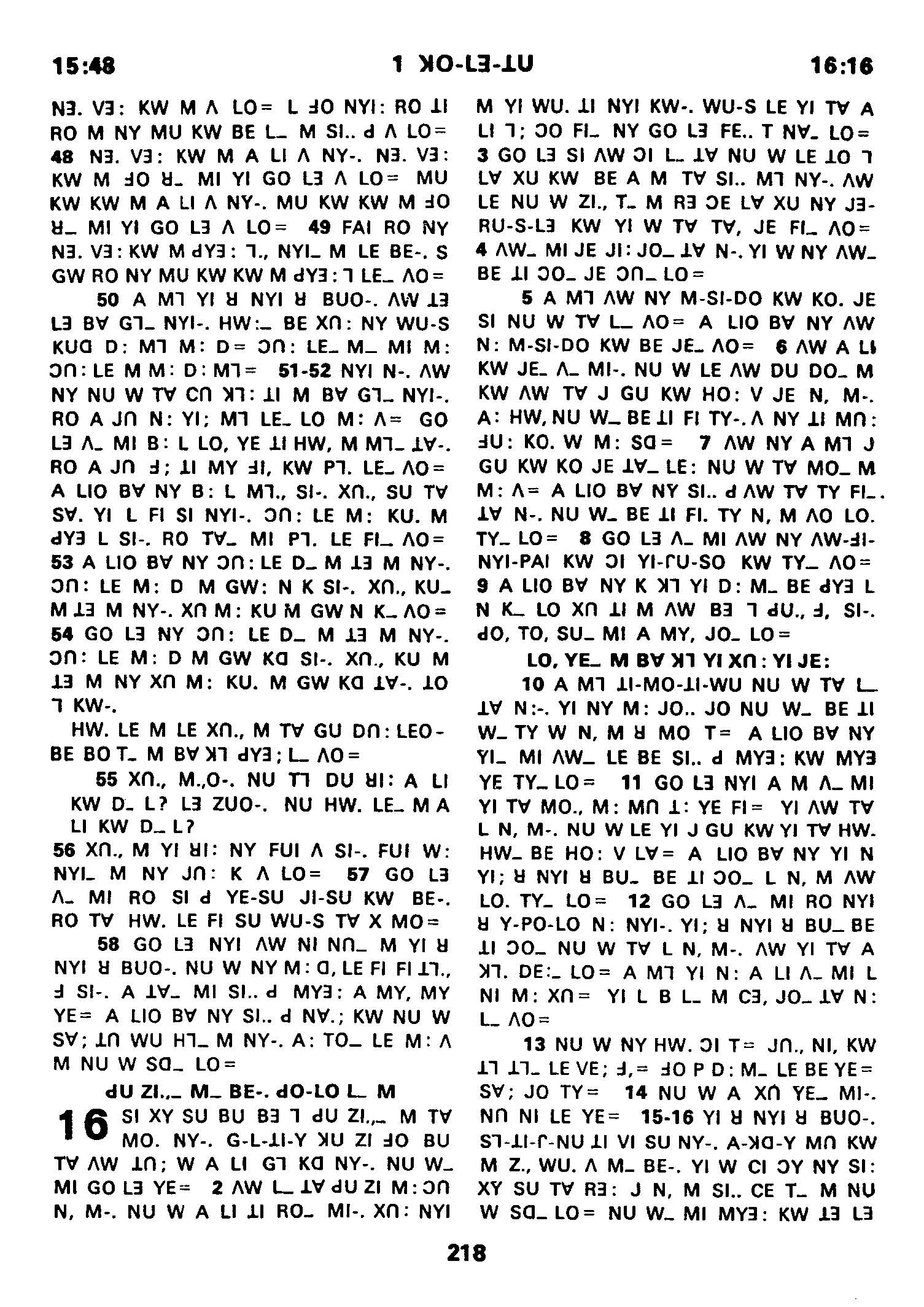 1980年傈僳語聖經全書 哥林多前書 15 章 48 節到 16 章 16 節