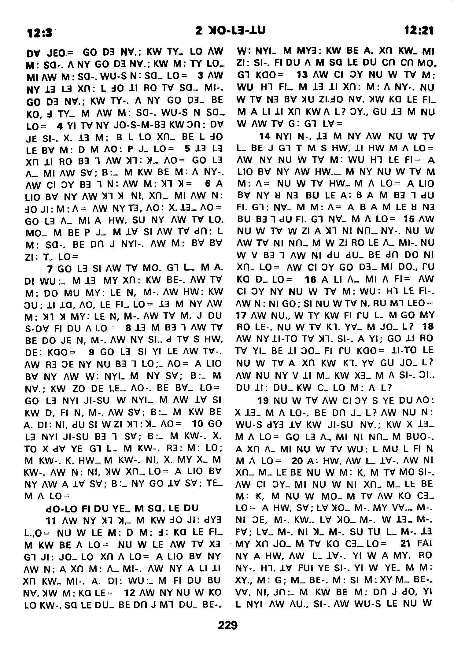 1980年傈僳語聖經全書 哥林多後書 12 章 3 節到 12 章 21 節