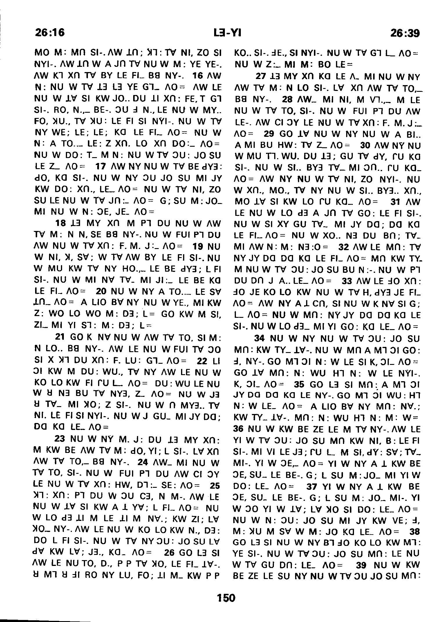 1980年傈僳語聖經全書 利未記 26 章 16 節到 26 章 39 節