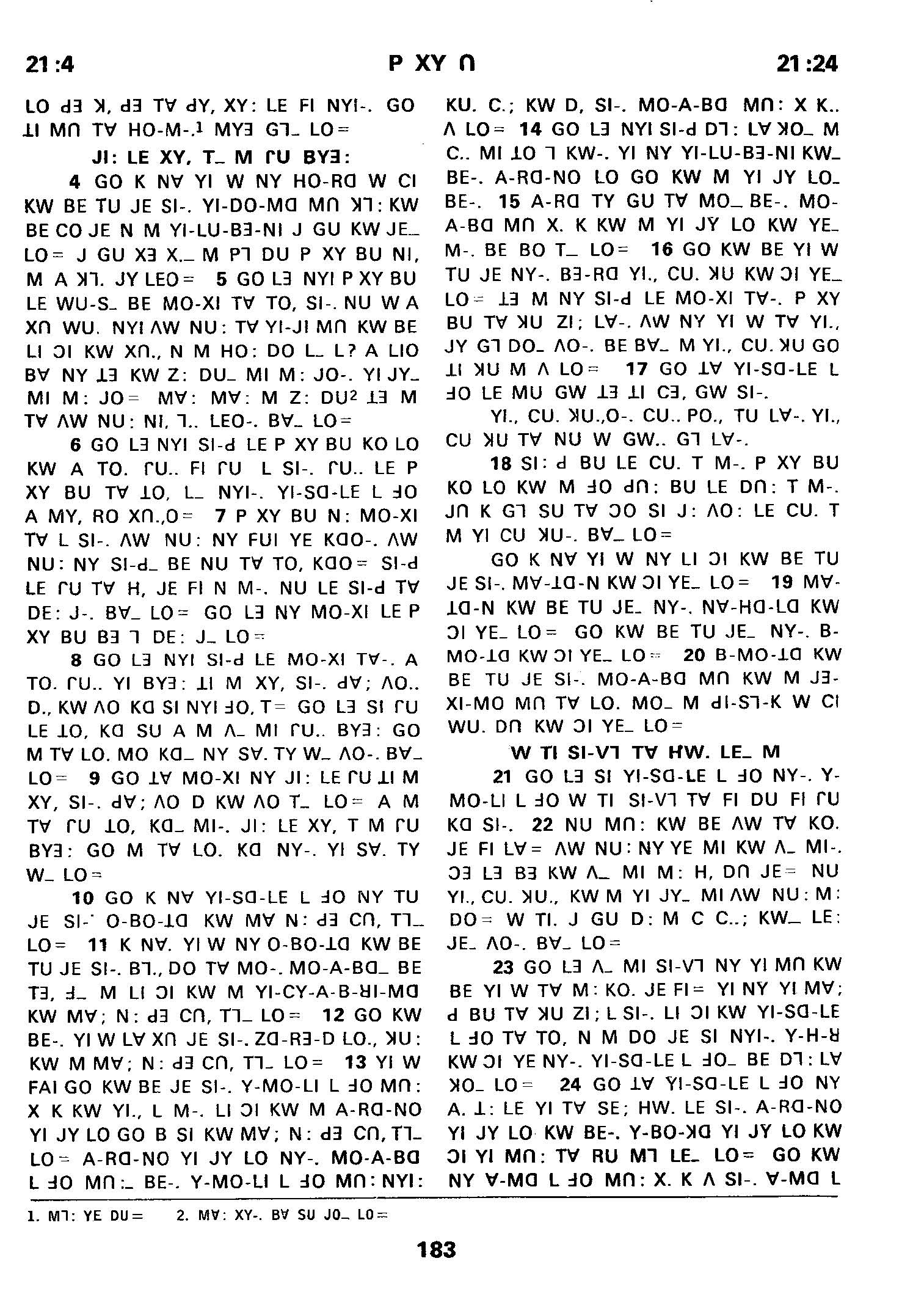 1980年傈僳語聖經全書 民數記 21 章 4 節到 21 章 24 節