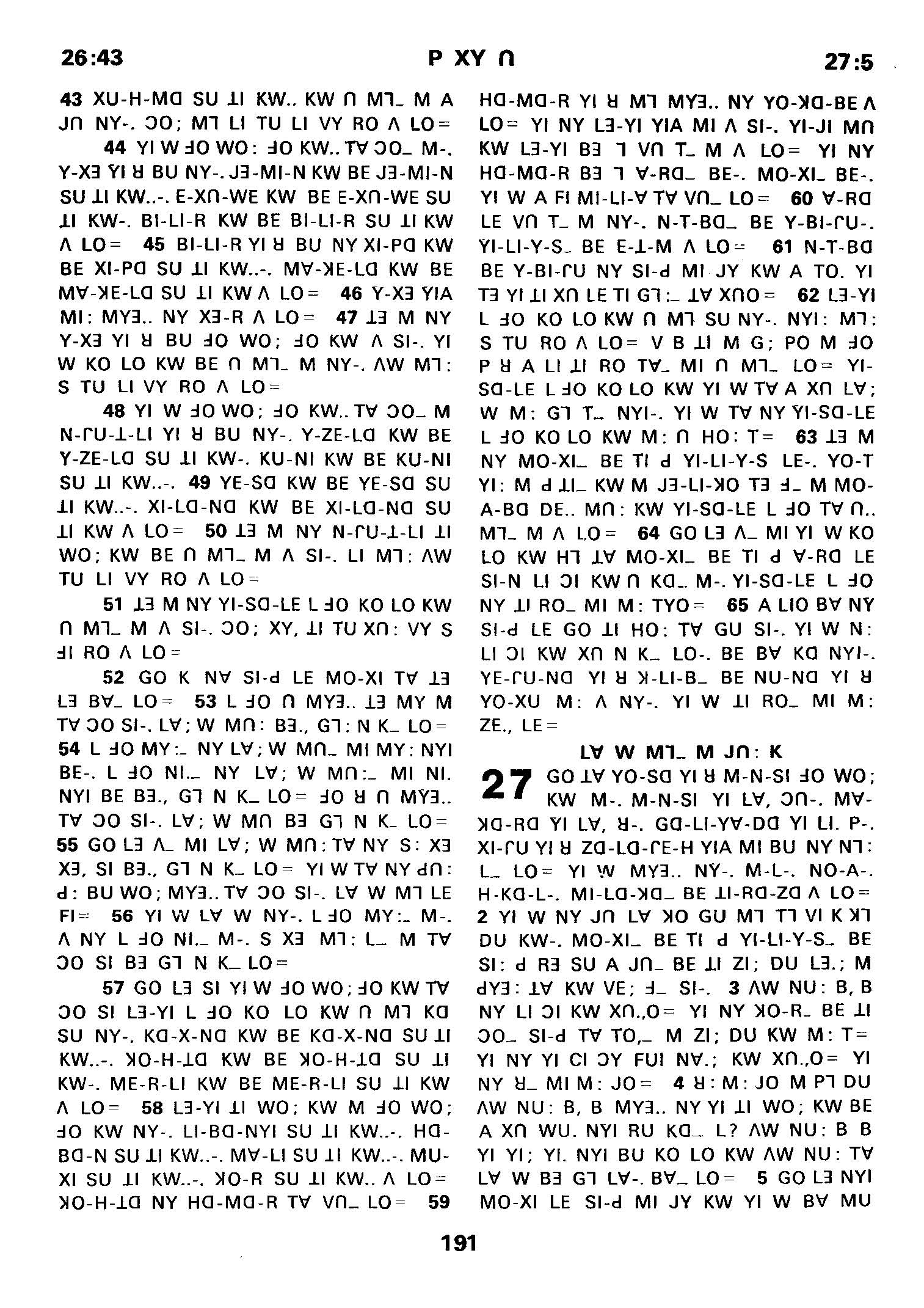 1980年傈僳語聖經全書 民數記 26 章 43 節到 27 章 5 節