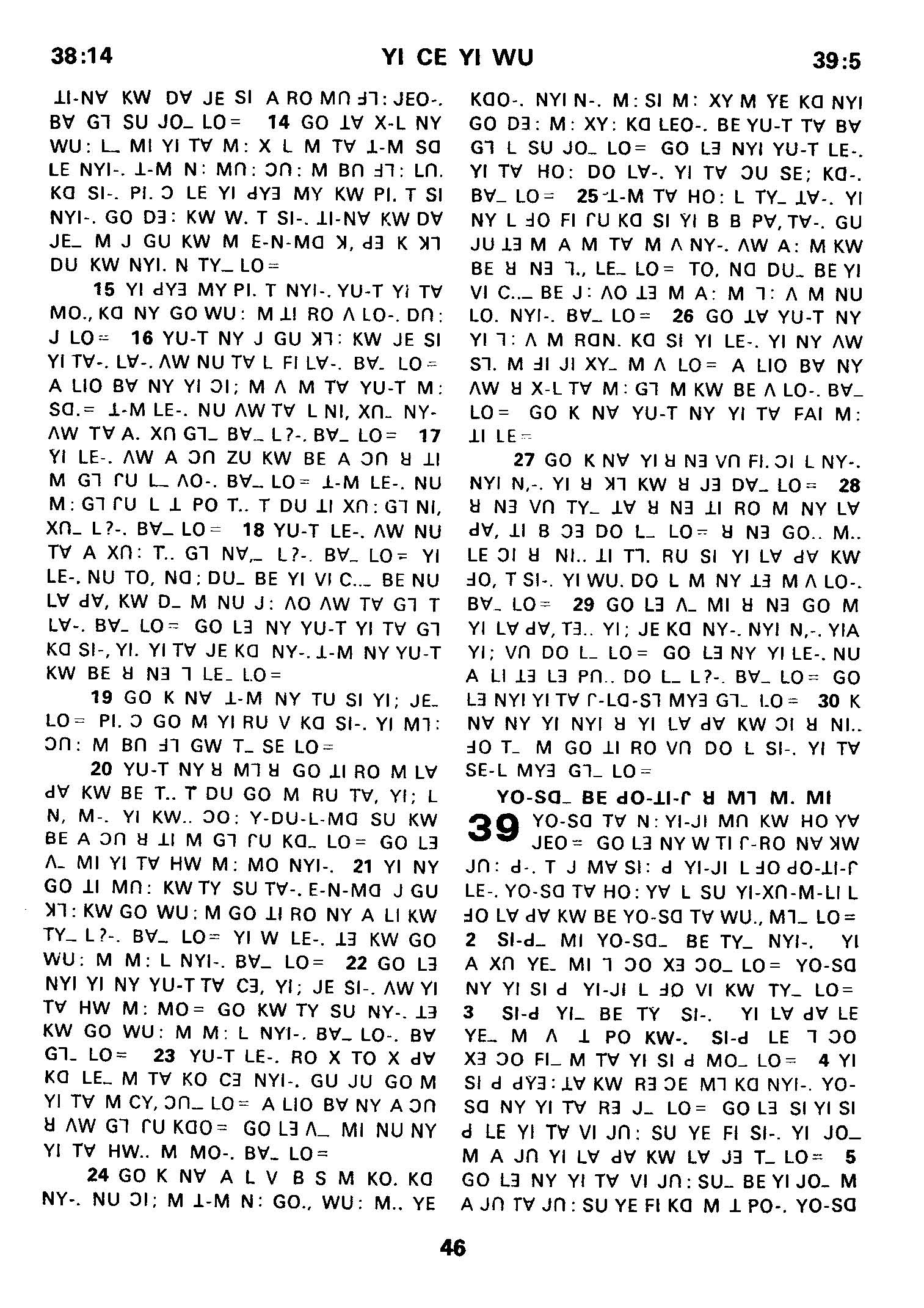 1980年傈僳語聖經全書 創世記 38 章 14 節到 39 章 5 節