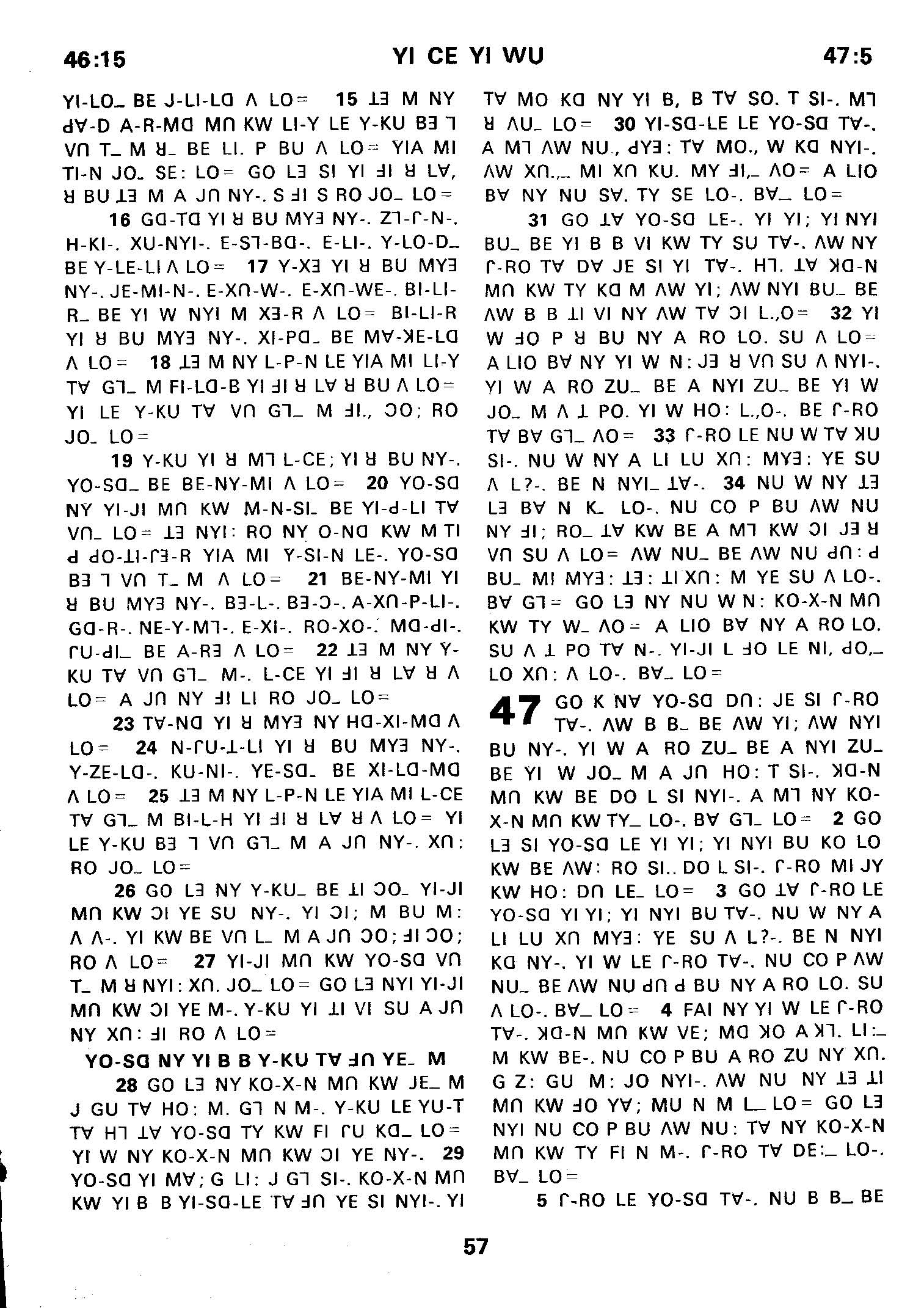 1980年傈僳語聖經全書 創世記 46 章 15 節到 47 章 5 節