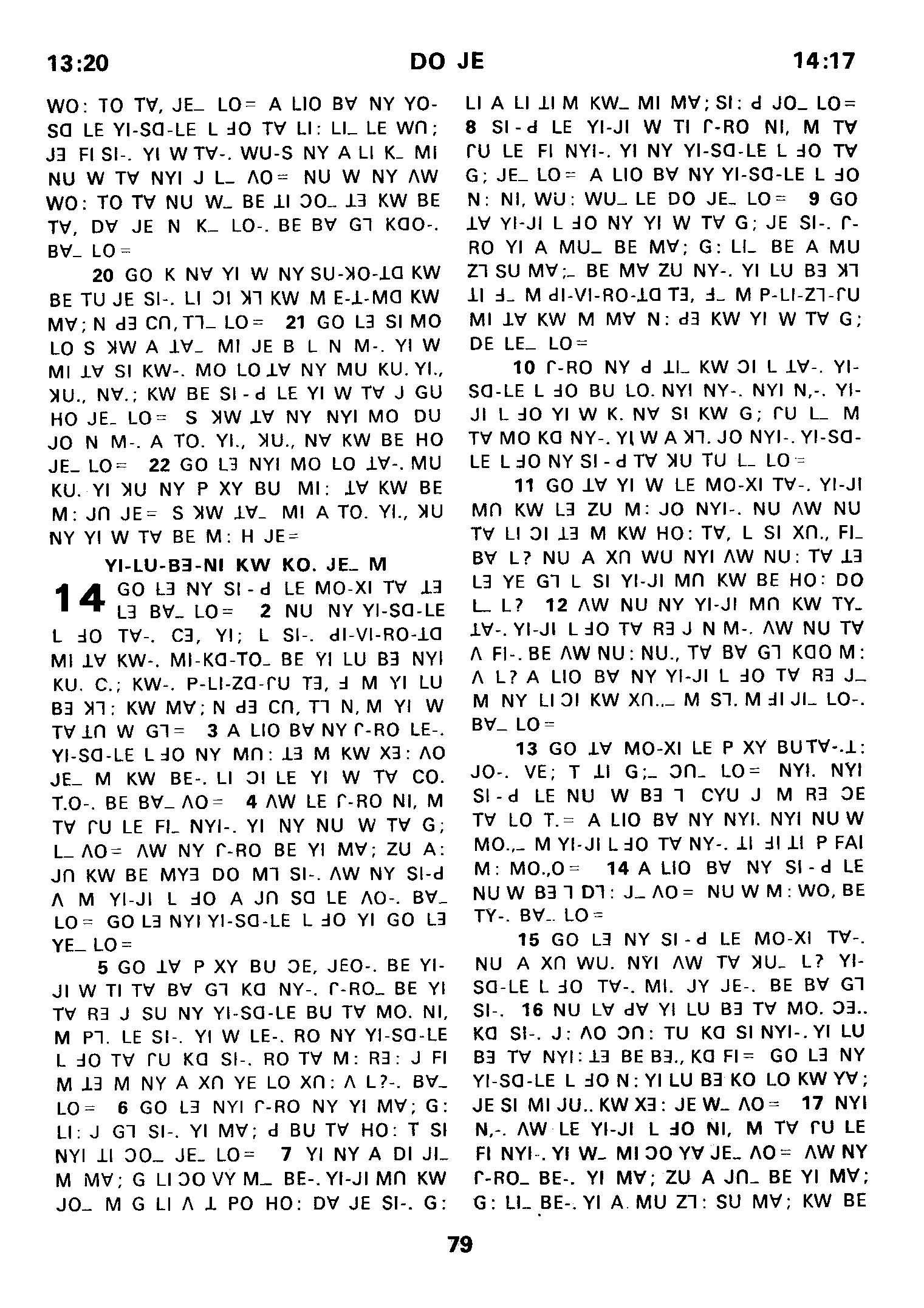 1980年傈僳語聖經全書 出埃及記 13 章 20 節到 14 章 17 節