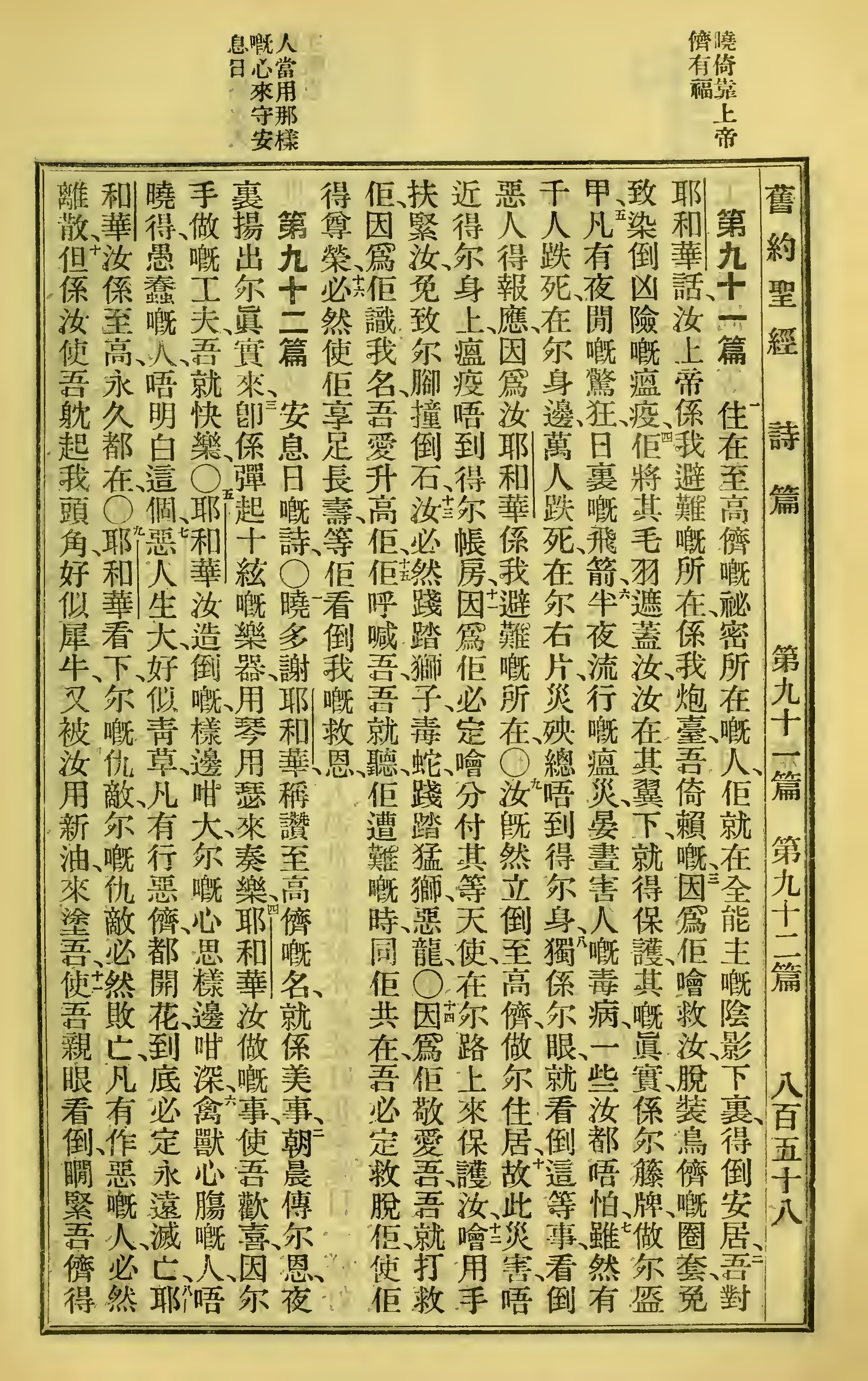 1923年聖經全書 詩篇 91 章 1 節到 92 章 11 節