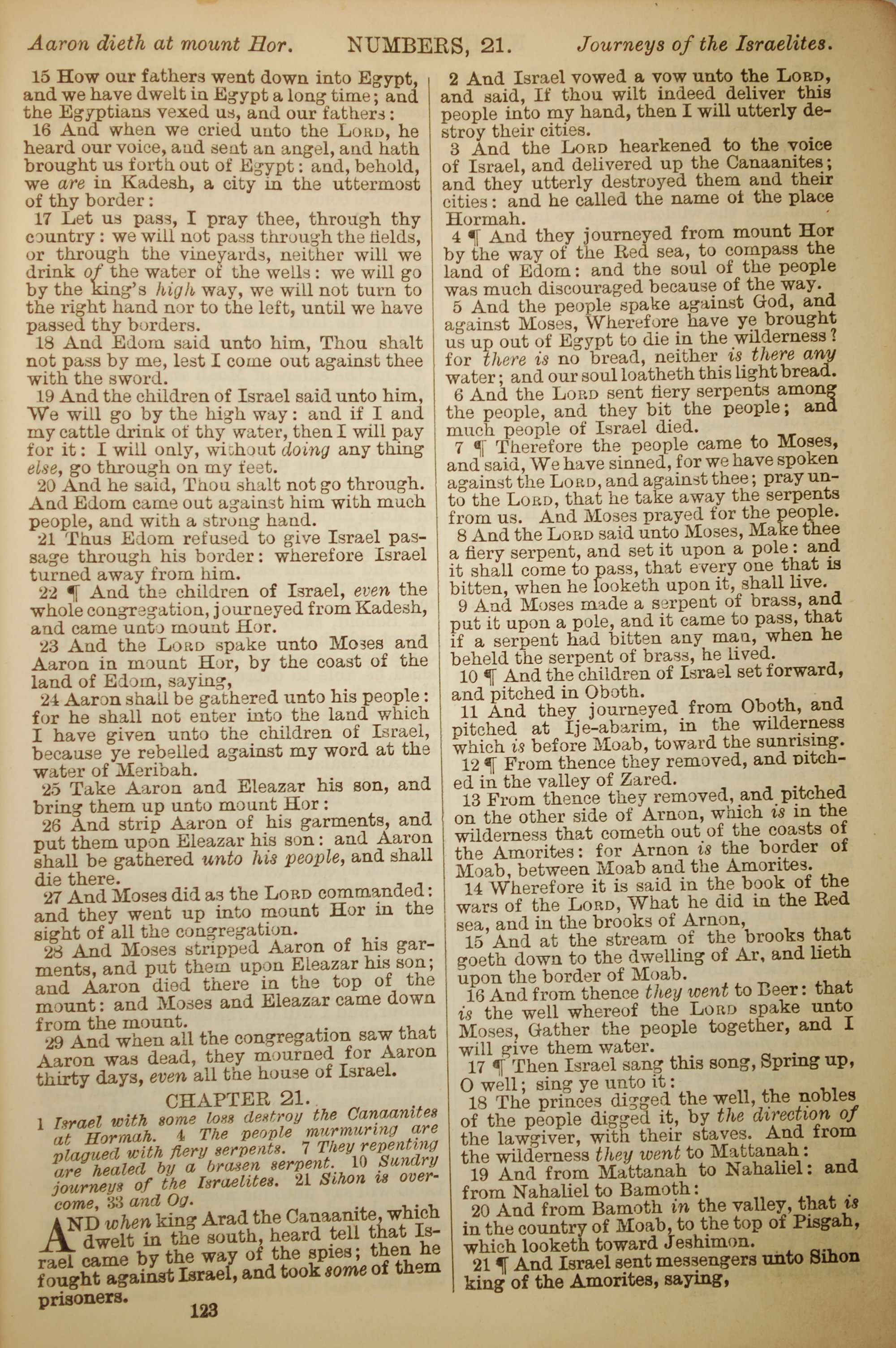 1886年英文聖經 民數記 20 章 15 節到 21 章 21 節