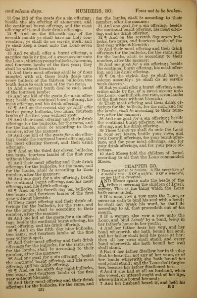 1886年英文聖經 民數記 29 章 11 節到 30 章 7 節