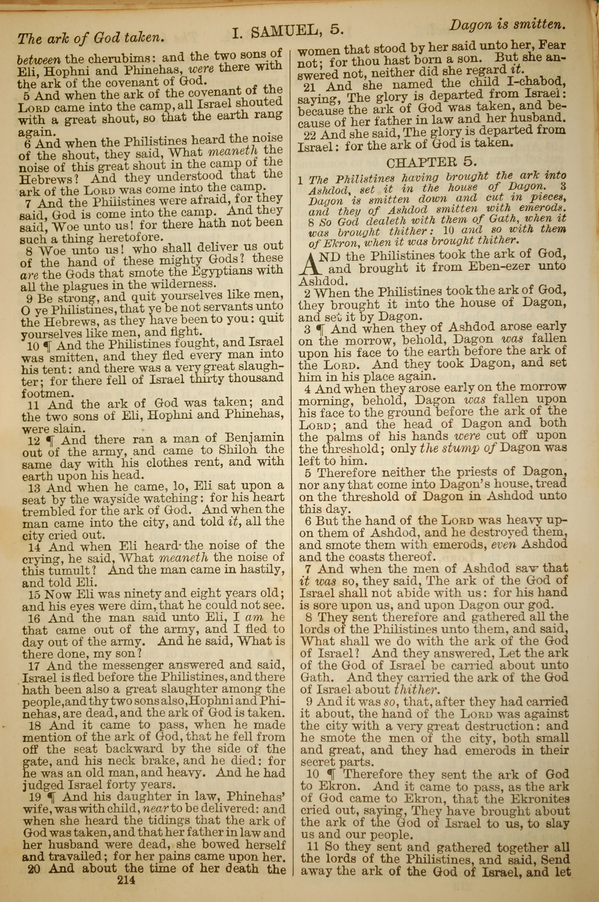 1886年英文聖經 撒母耳記上 4 章 5 節到 5 章 11 節