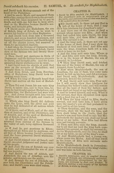1886年英文聖經 撒母耳記下 8 章 2 節到 9 章 13 節