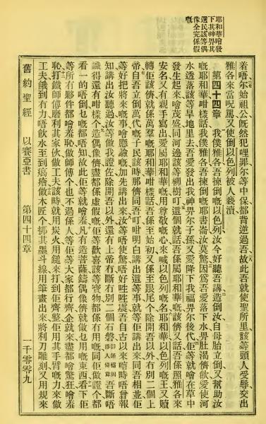 1923年客話新舊約聖經漢字版 以賽亞書 43 章 27 節到 44 章 12 節