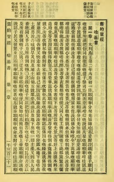 1923年客話新舊約聖經漢字版 哈該書 1 章 1 節到 1 章 13 節