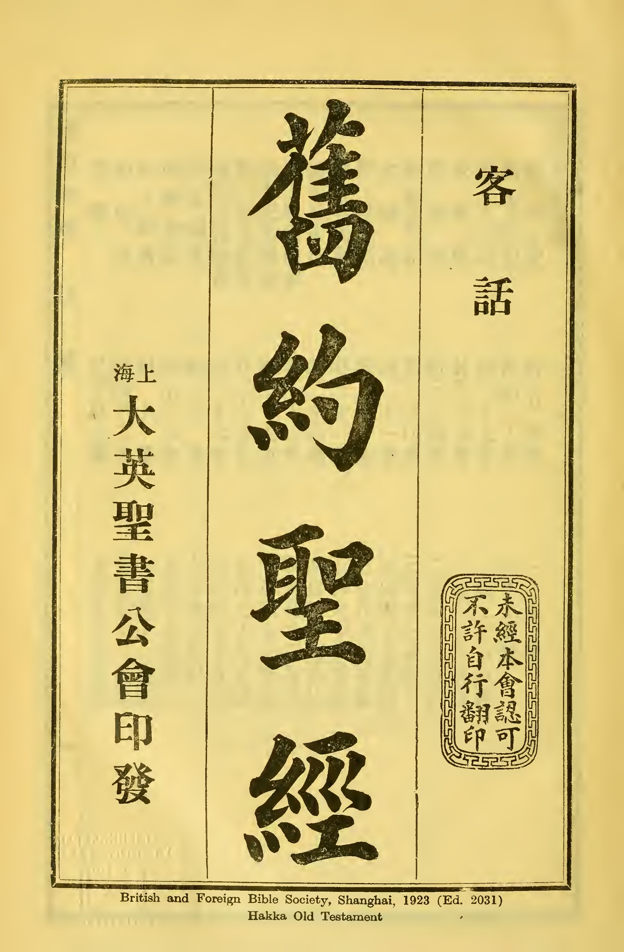 1923年客話新舊約聖經漢字版 封面 0 章 0 節到 0 章 6 節