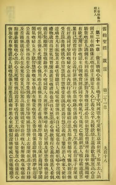 1923年客話新舊約聖經漢字版 箴言 21 章 1 節到 21 章 28 節