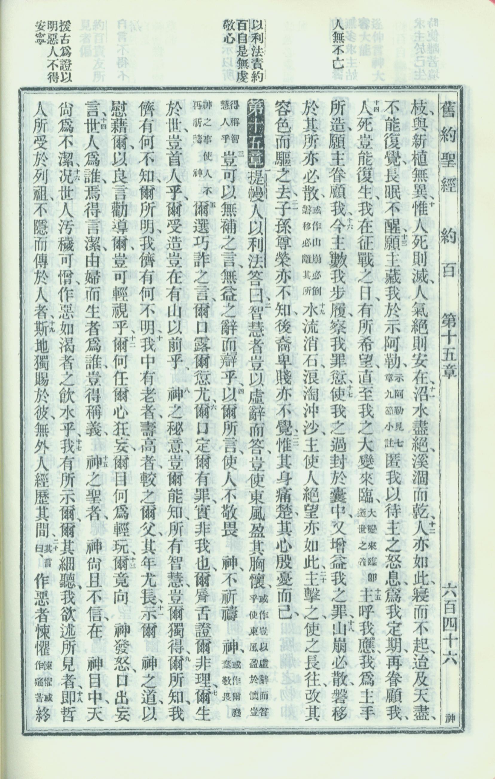 1913年新舊約全書 約伯記 14 章 10 節到 15 章 19 節
