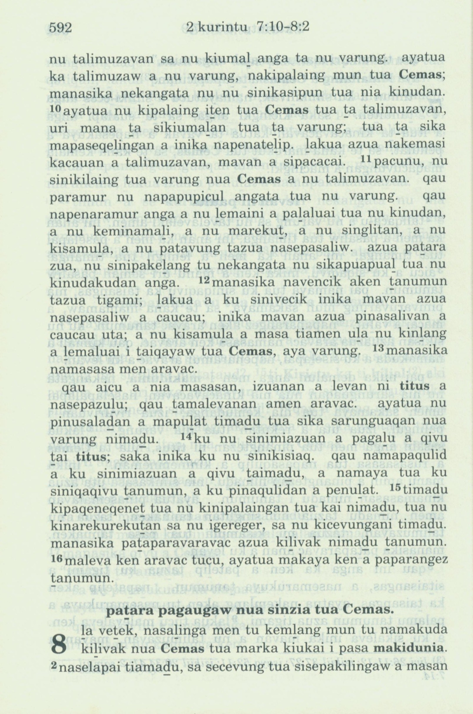 1993年新舊約全書 哥林多後書 7 章 10 節到 8 章 2 節