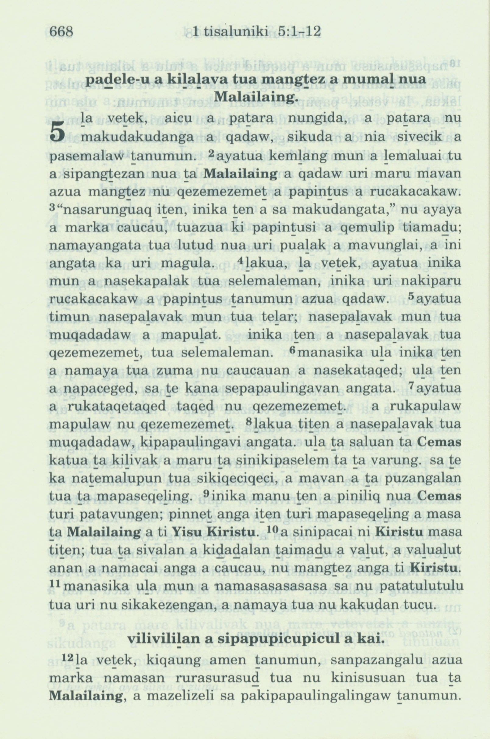 1993年新舊約全書 帖撒羅尼迦前書 5 章 1 節到 5 章 12 節