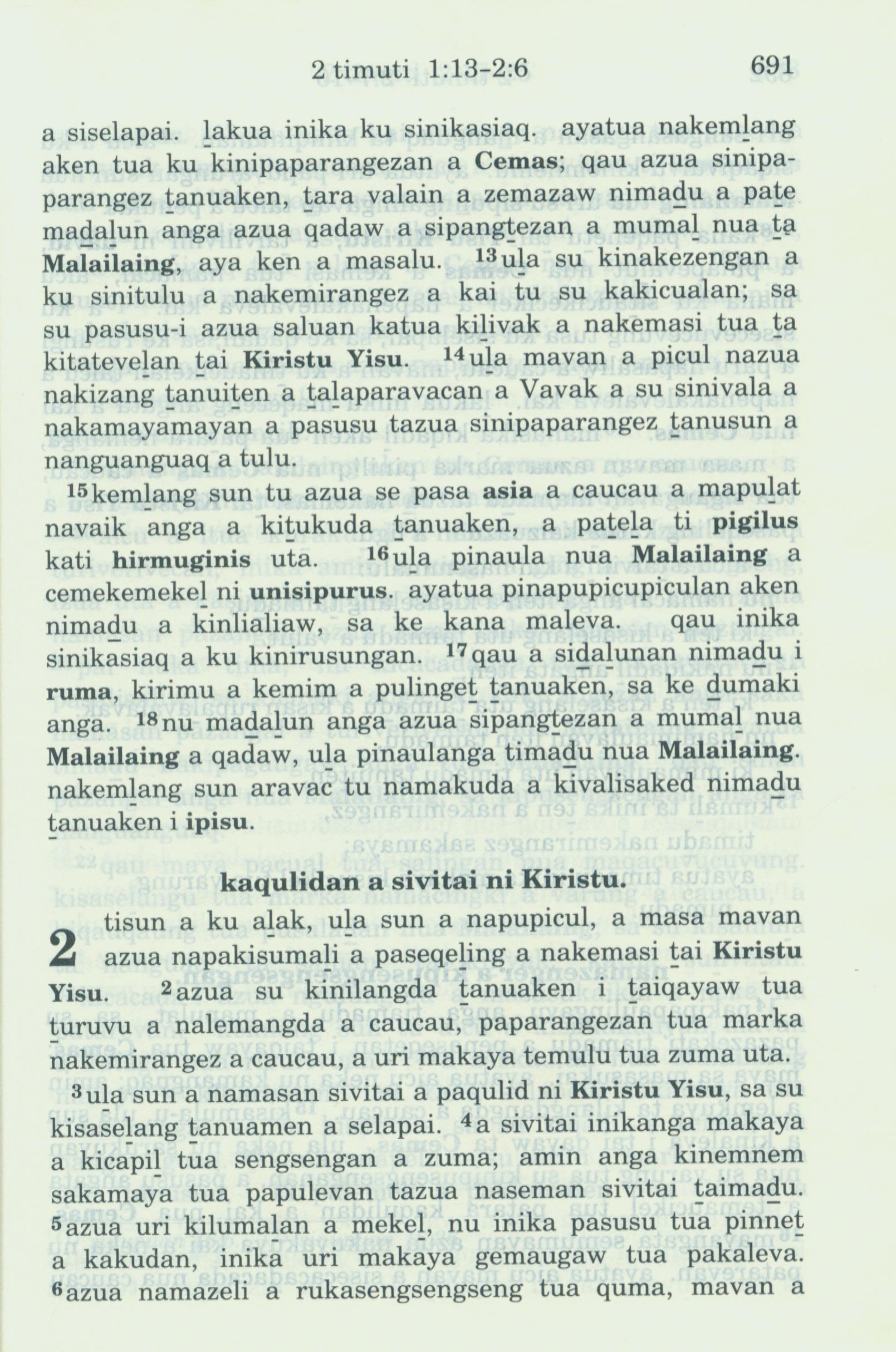 1993年新舊約全書 提摩太後書 1 章 12 節到 2 章 6 節