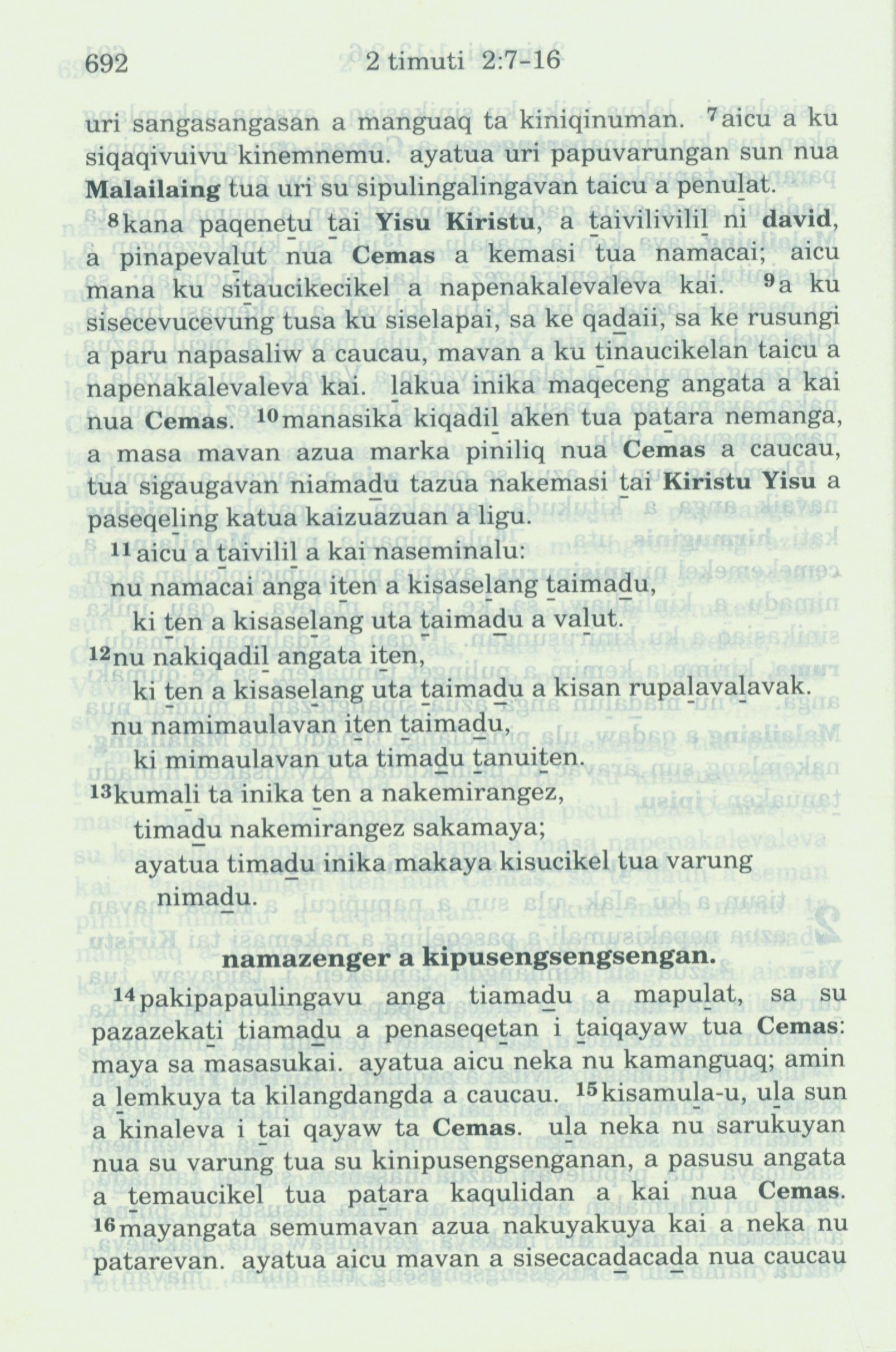 1993年新舊約全書 提摩太後書 2 章 7 節到 2 章 16 節