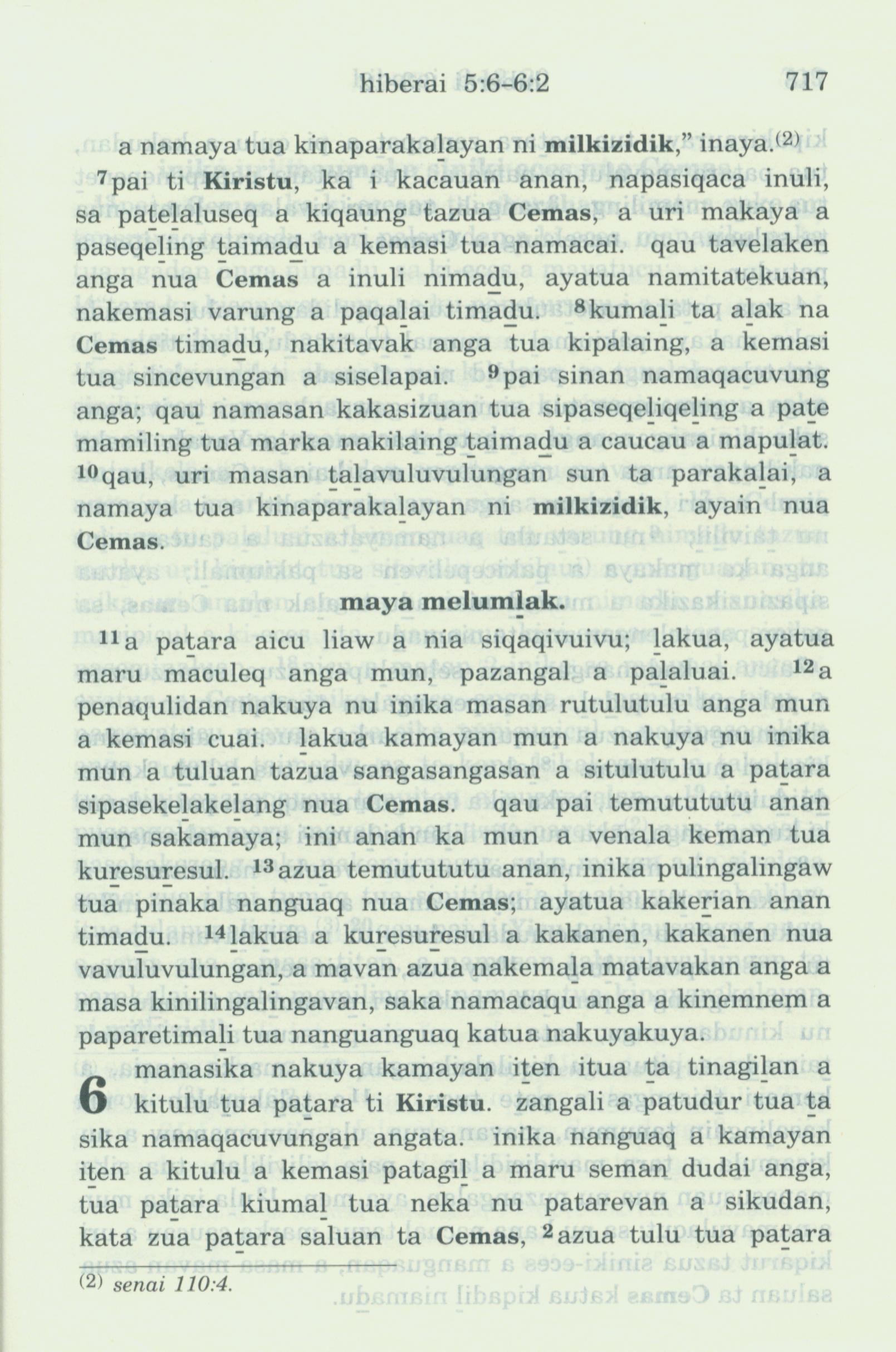 1993年新舊約全書 希伯來書 5 章 7 節到 6 章 2 節