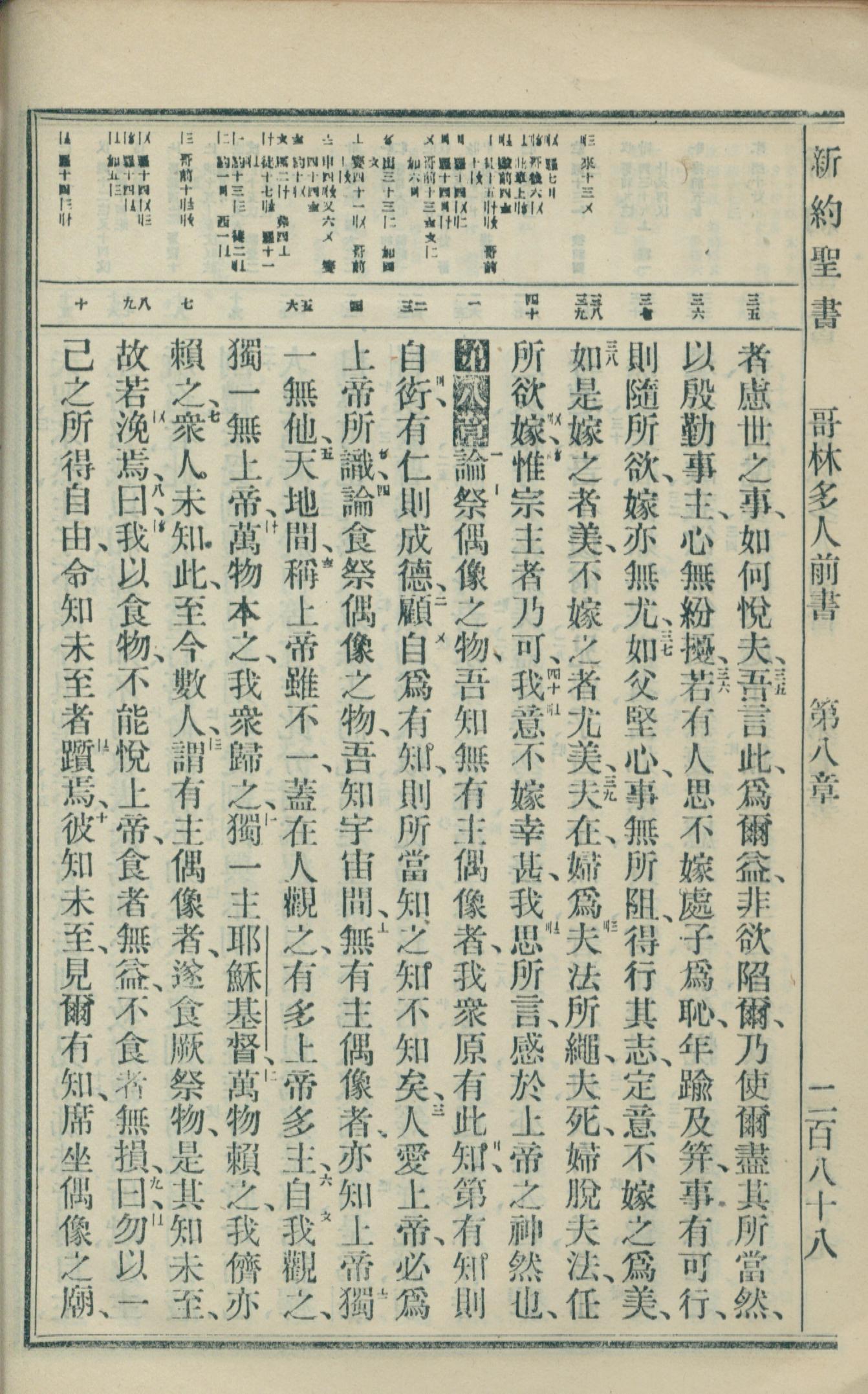1918年新約全書(文理委辦譯本串珠版) 哥林多前書 7 章 35 節到 8 章 10 節