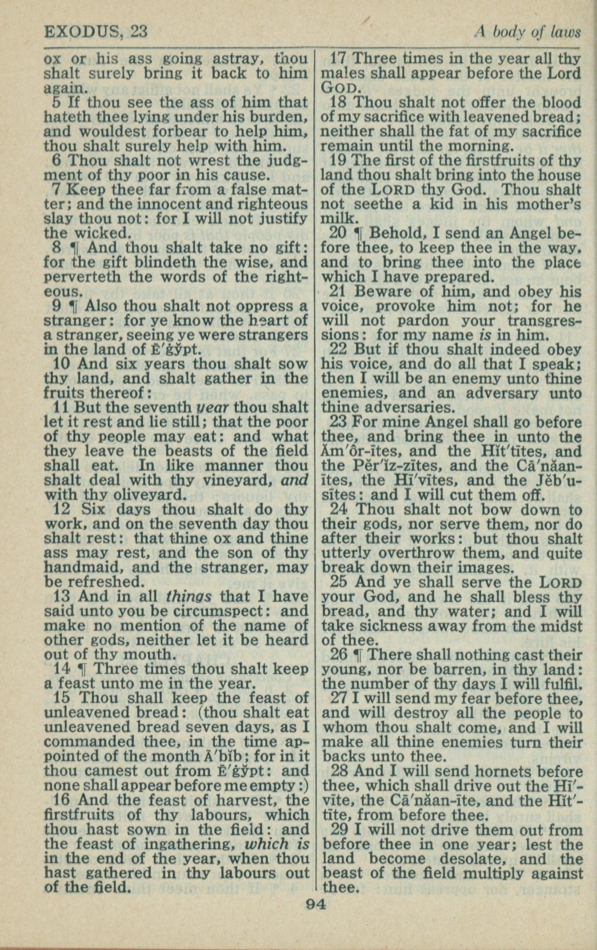 1946年King James Version 出埃及記 23 章 5 節到 23 章 29 節