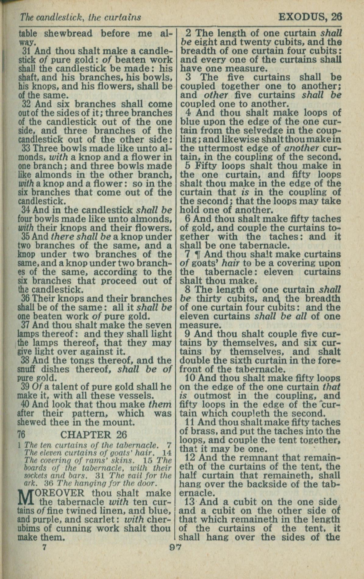 1946年King James Version 出埃及記 25 章 31 節到 26 章 13 節