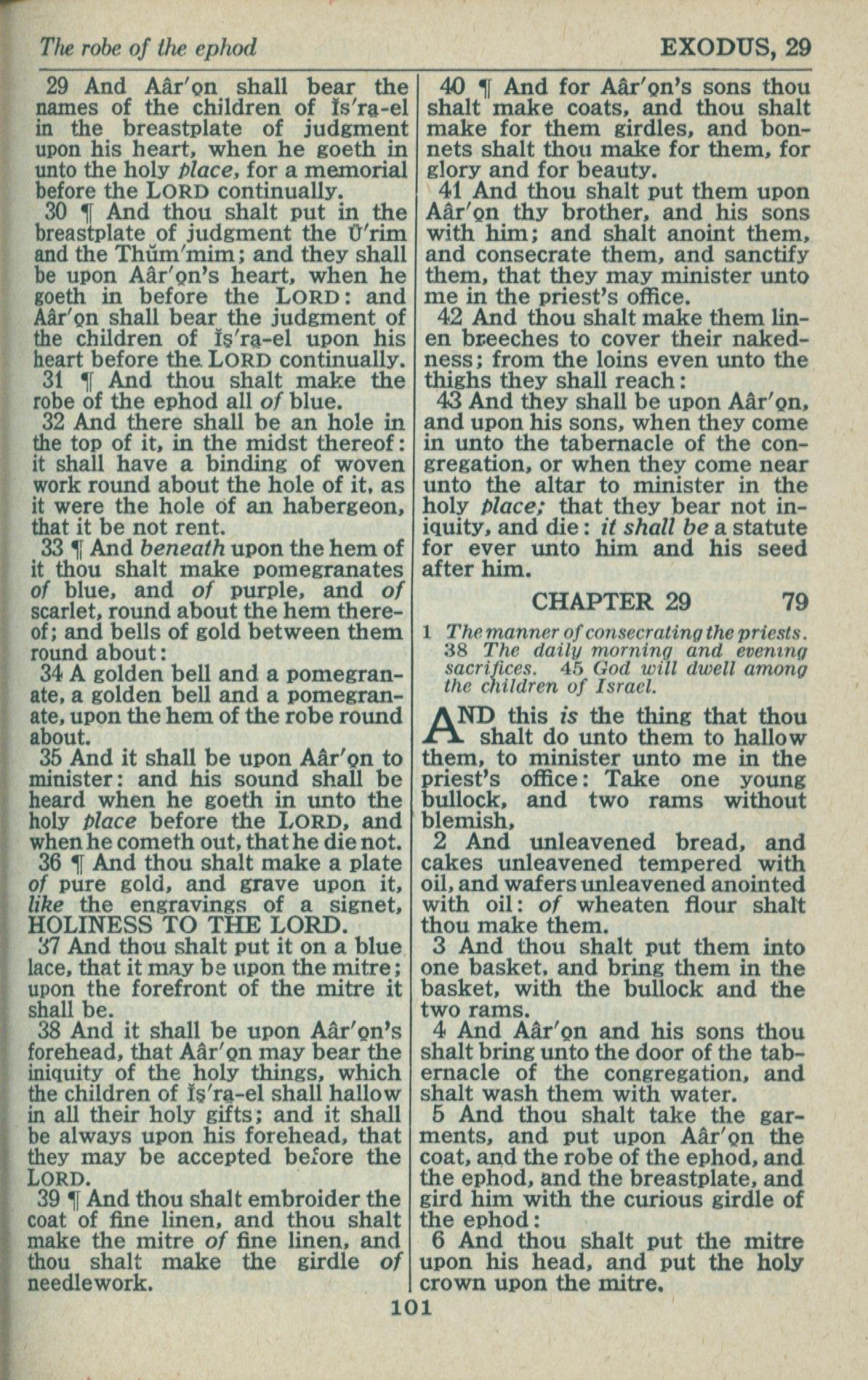 1946年King James Version 出埃及記 28 章 29 節到 29 章 6 節