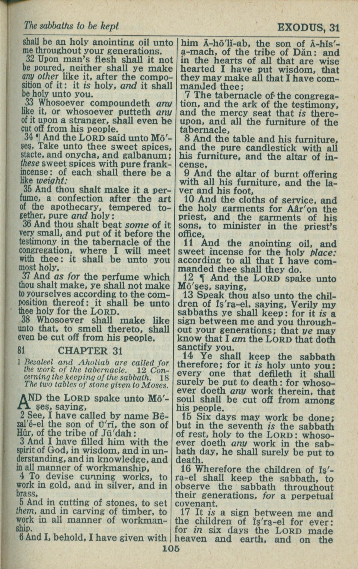 1946年King James Version 出埃及記 30 章 32 節到 31 章 17 節