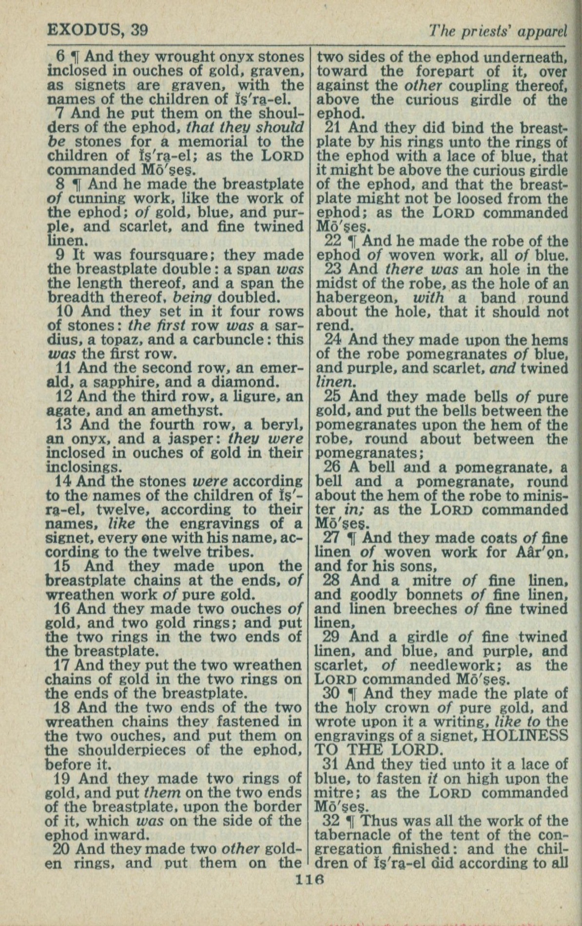 1946年King James Version 出埃及記 39 章 6 節到 39 章 32 節