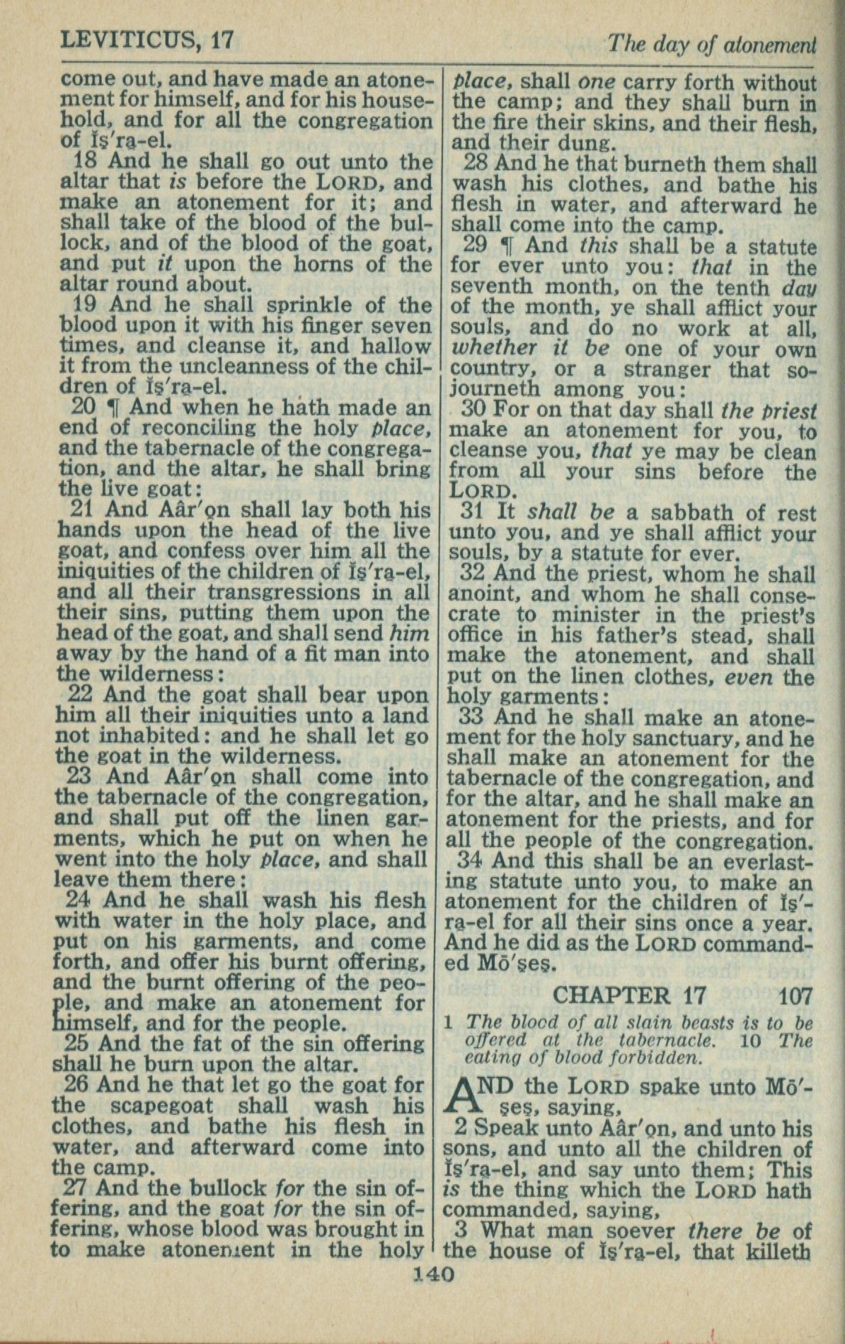 1946年King James Version 利未記 16 章 18 節到 17 章 3 節