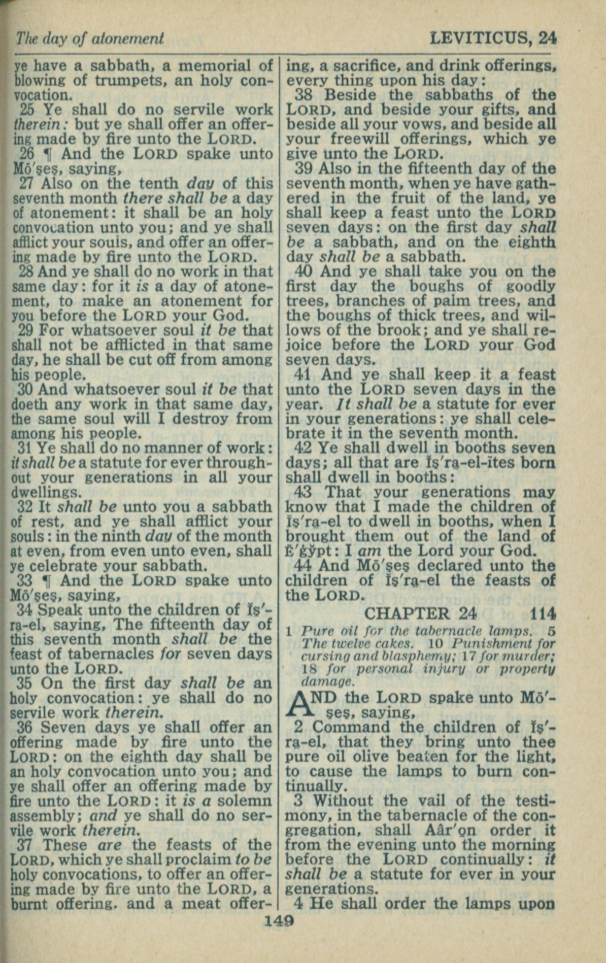 1946年King James Version 利未記 23 章 25 節到 24 章 4 節