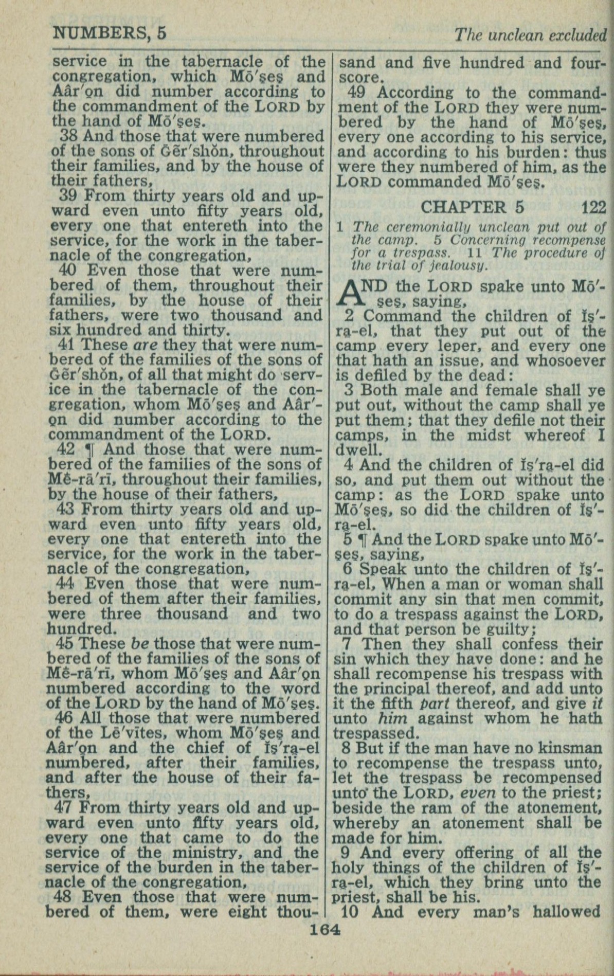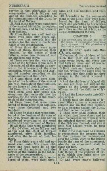1946年King James Version 民數記 4 章 38 節到 5 章 10 節