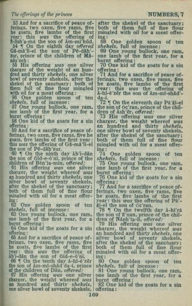 1946年King James Version 民數記 7 章 53 節到 7 章 82 節