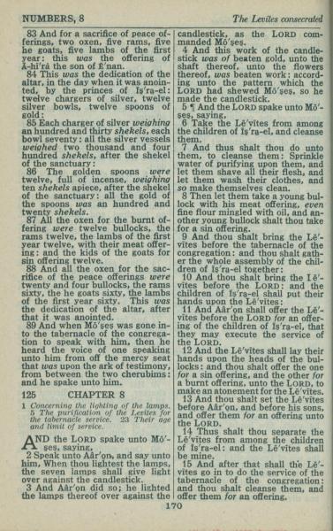 1946年King James Version 民數記 7 章 83 節到 8 章 15 節