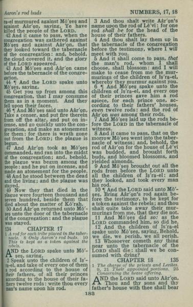1946年King James Version 民數記 16 章 42 節到 18 章 1 節