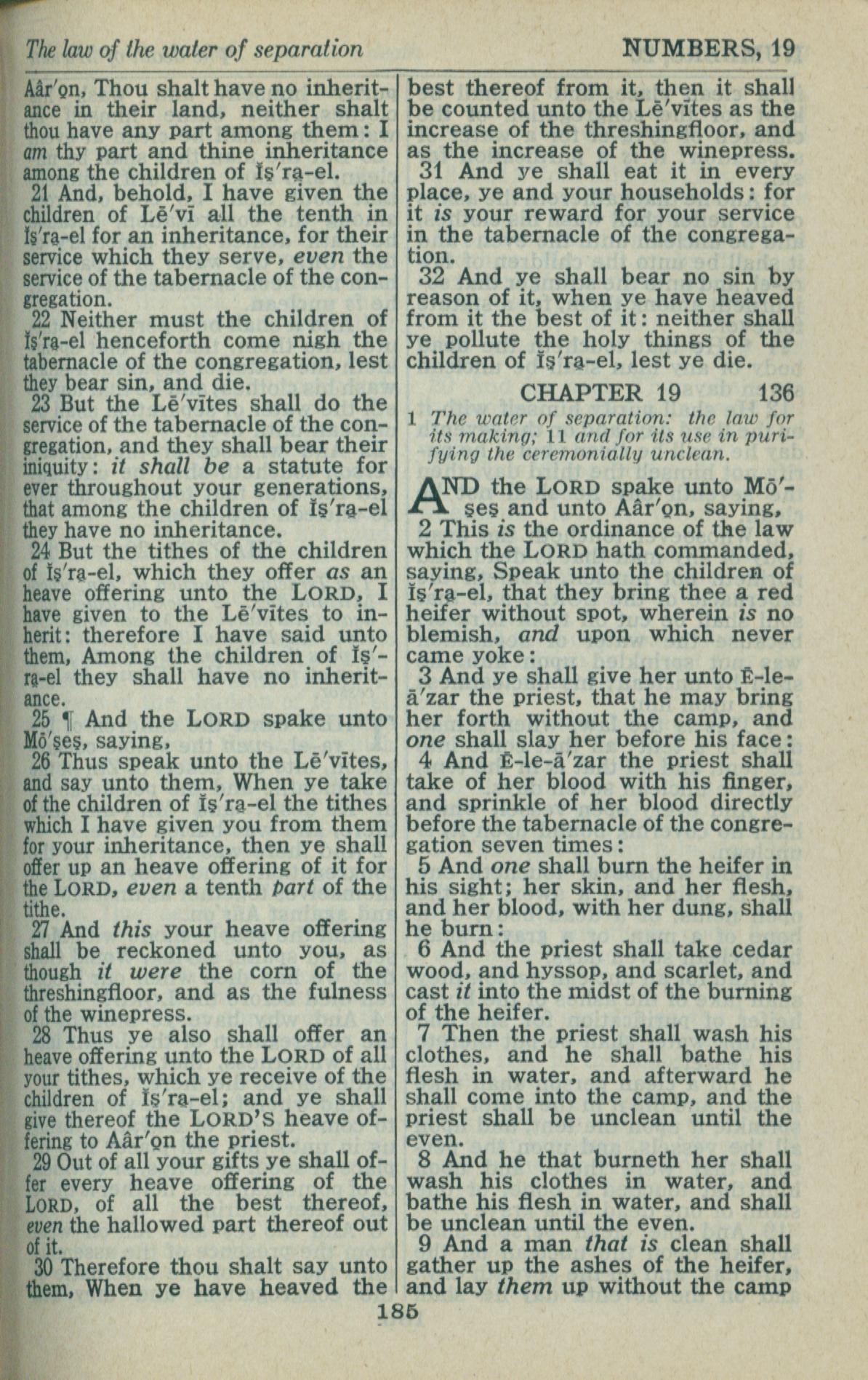 1946年King James Version 民數記 18 章 20 節到 19 章 9 節