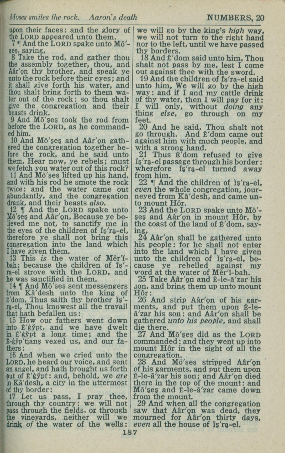 1946年King James Version 民數記 20 章 7 節到 20 章 29 節